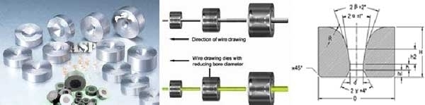 PCD Dies are used to draw both ferrous and non-ferrous metals at both high and low speeds due to its quality of thermal conductivity which enables it to observer the heat, which generates while drawing, from the die bore and also helps the die to maintain its diameter for a longer time. P.C.D. Blanks are available in different grain sizes i.e. 3 um, 5 um, 25 um, 50 um which Ajex chooses itself according to the customers' demand or their preference. Now a days, wire drawing units are preferring the use of P.C.D. wire drawing dies instead of Natural diamond dies except in some special cases due to life & Re-Boring capacity obtaining from P.C.D. Dies.